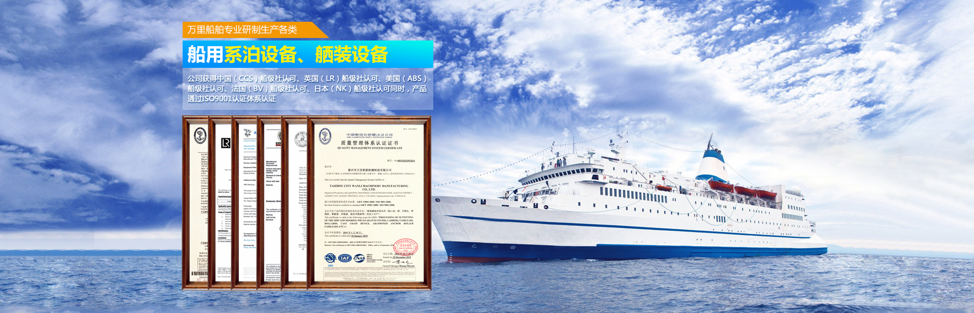 泰州市萬里船舶機(jī)械制造有限公司位于姜堰市西郊橋頭工業(yè)集中區(qū),東臨寧靖鹽高速公路,南傍寧啟鐵路及328國道,距泰州火車站10公里,交通十分便利。 本公司是一家研制生產(chǎn)各類船用系泊設(shè)備、舾裝設(shè)備的專業(yè)廠家,所生產(chǎn)產(chǎn)品品種齊全、質(zhì)量可靠。其中導(dǎo)纜器、導(dǎo)纜滾輪、導(dǎo)纜孔、帶纜樁、棄錨器、人孔蓋、導(dǎo)鏈滾輪廣泛應(yīng)用于國內(nèi)各大船廠,同時(shí)外銷日本、韓國、西班牙、意大利、臺灣等國家及地區(qū)。本公司已獲得中國(CCS)船級社認(rèn)可、英國(LR)船級社認(rèn)可,美國(A···